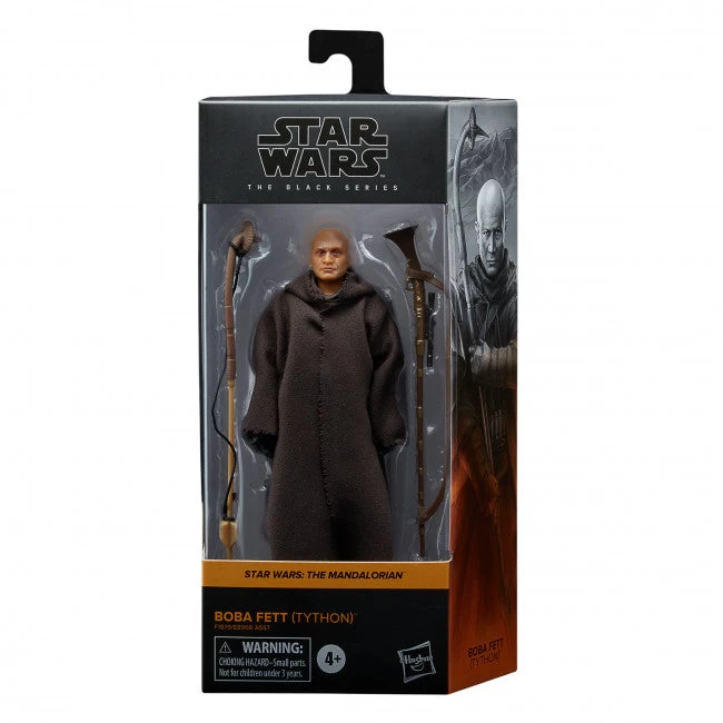 The 6-inch-scale Black Series figure is detailed to look like the Boba Fett (Tython) character from Star Wars: The Mandalorian, featuring premium detail and multiple points of articulation